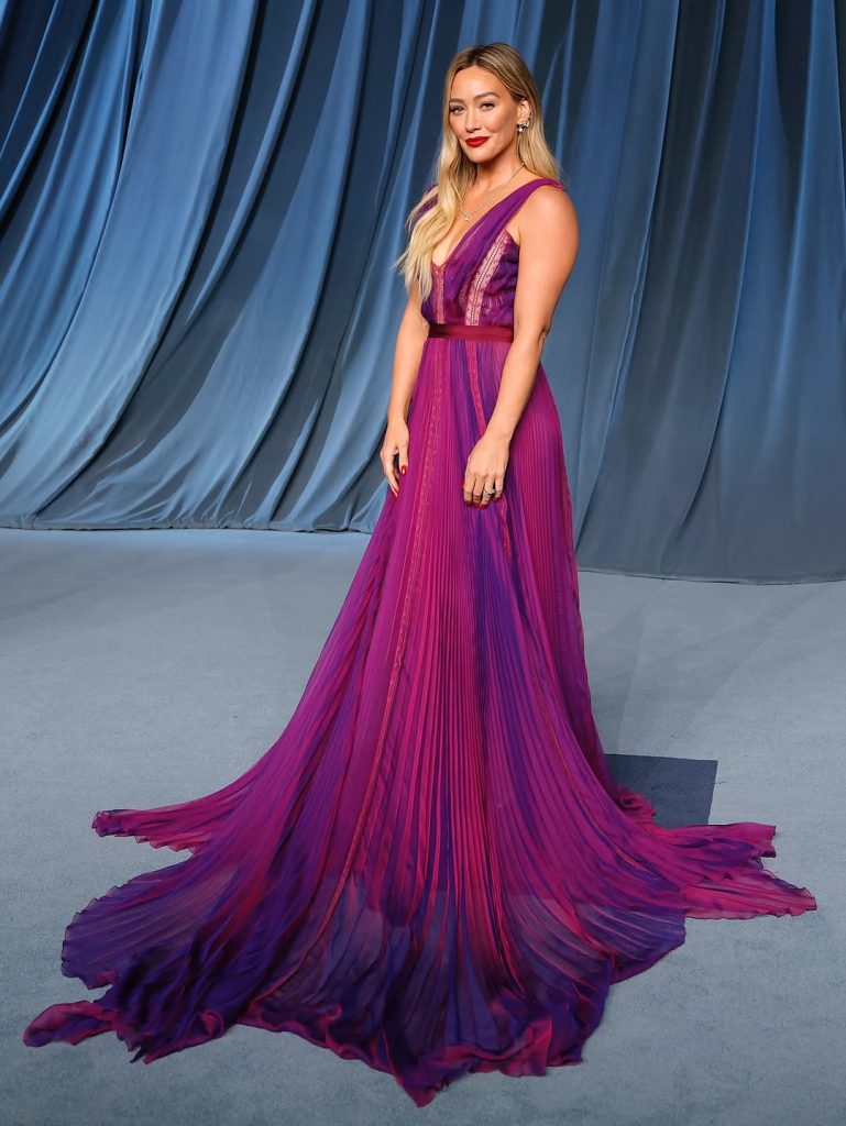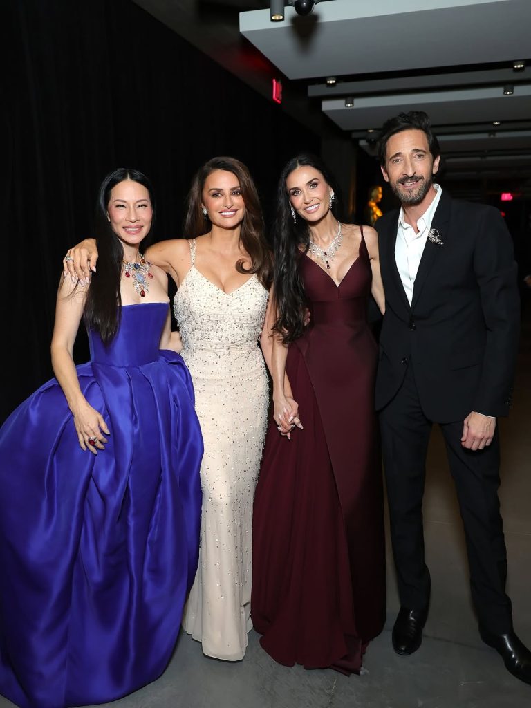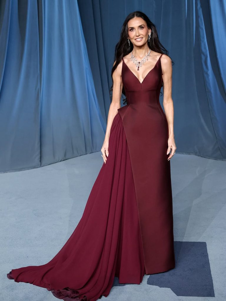 A atriz Demi Moore, por exemplo- compareceu usando um deslumbrante vestido Prada cor de vinho.