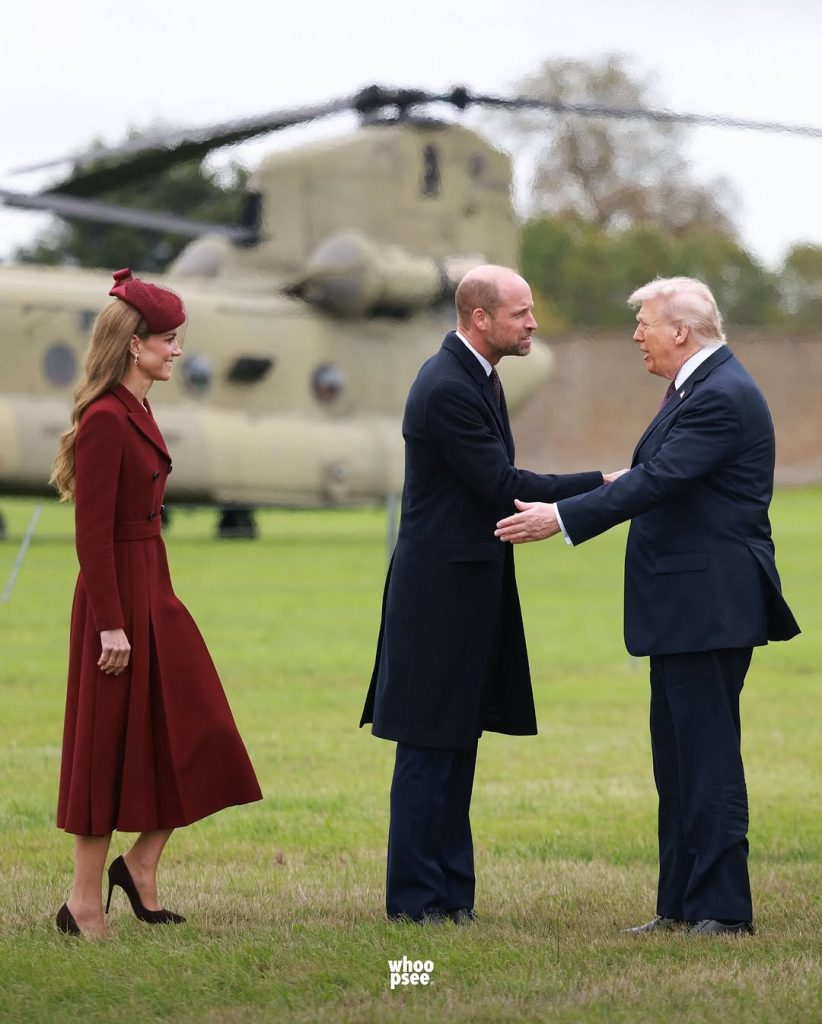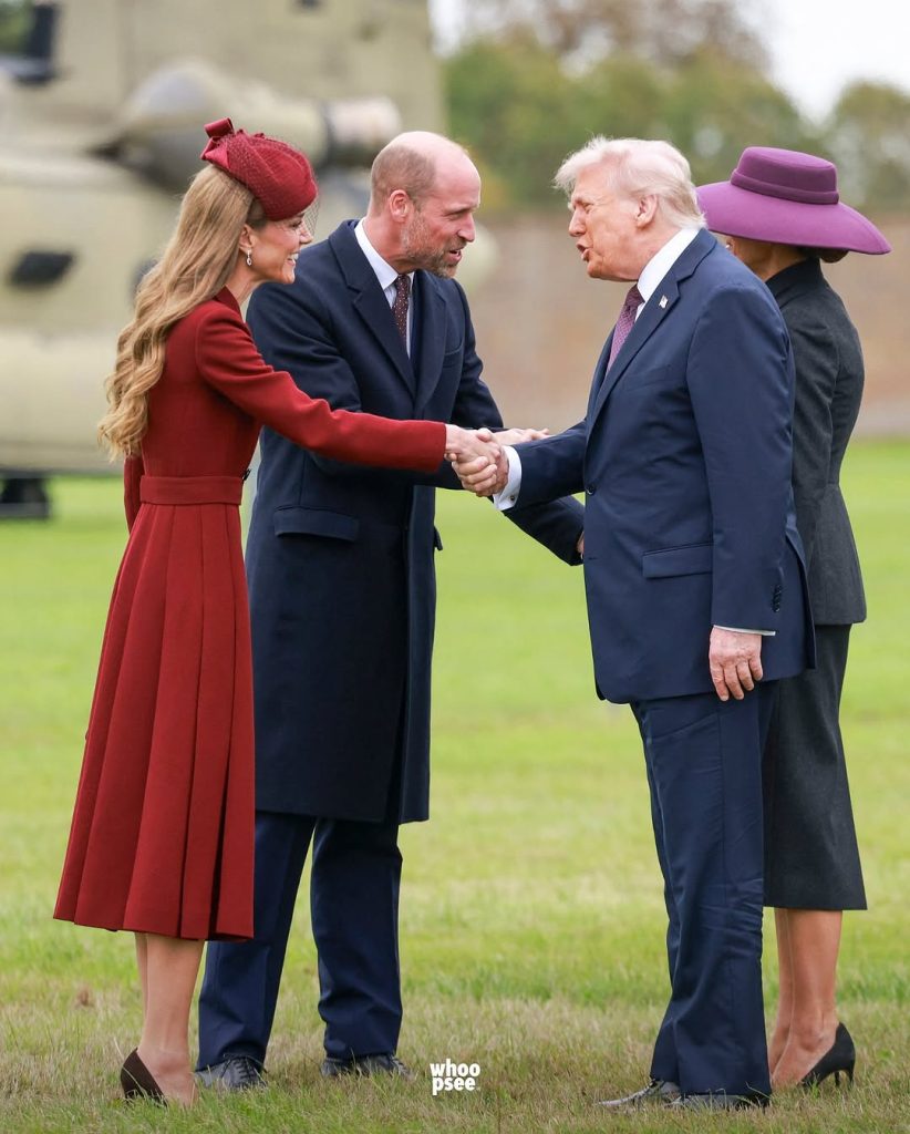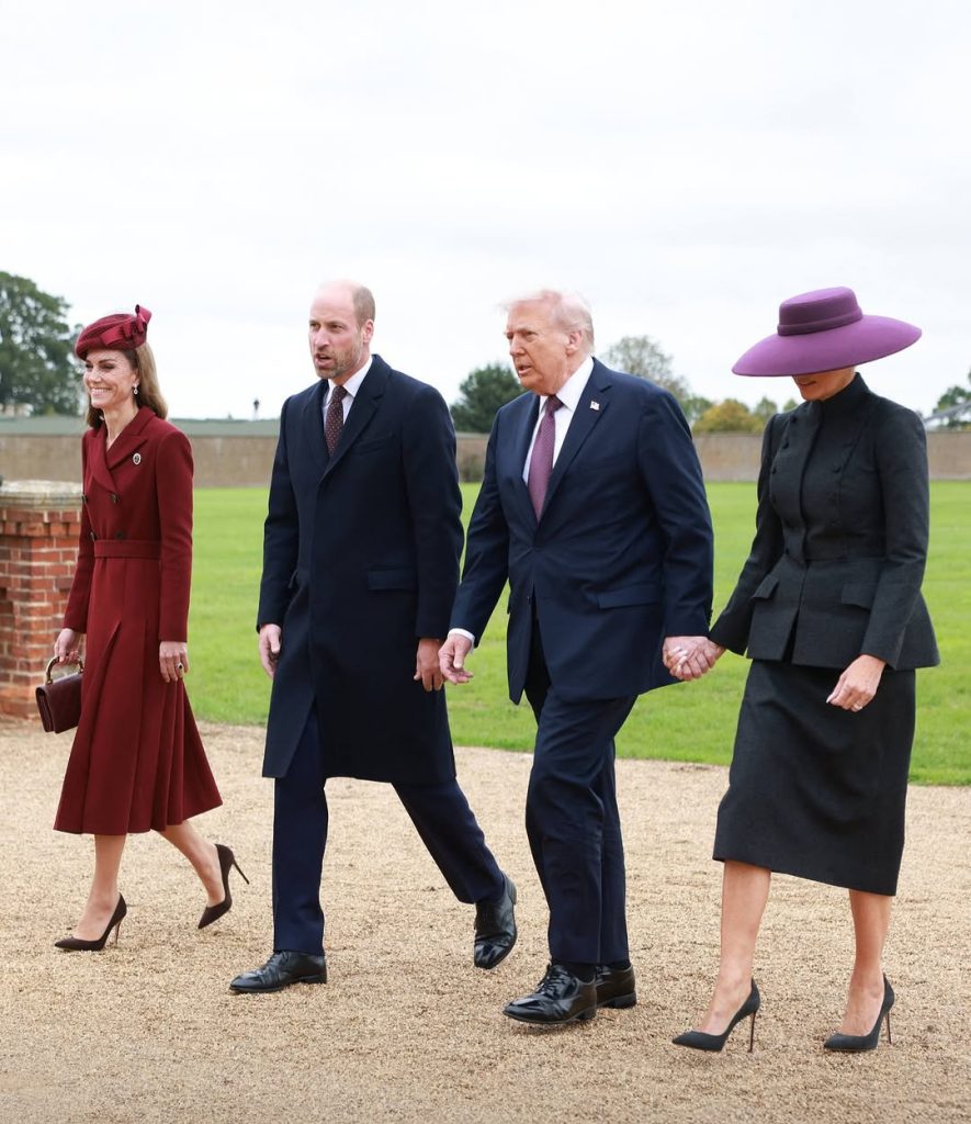 Antes do encontro oficial, os Príncipes de Gales, William e Kate, deram as boas-vindas aos Trumps nos jardins do castelo.
