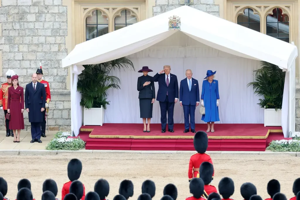 Trump e Melania foram recebidos com pompa e circunstância no Castelo de Windsor, onde se encontraram com o rei Charles III e a rainha Camilla.