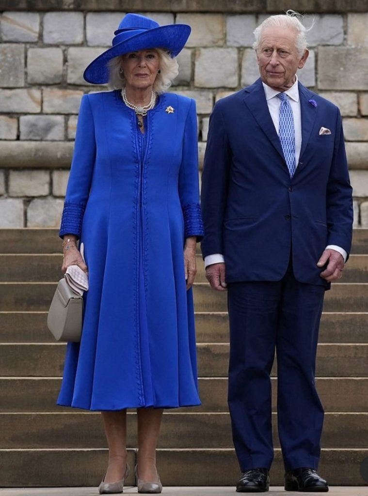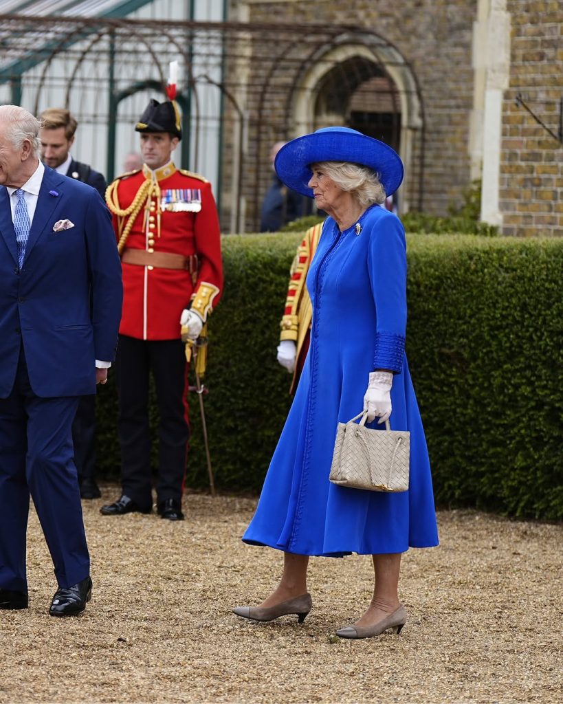 Quanto à rainha Camilla, destacou-se em azul, o mesmo tom que usou também para as cerimónias do VE Day, optando ainda pelo mesmo chapéu. A consorte repete um look que usou integralmente nas corridas de Ascot em 2024, desenhado por Fiona Clare Couture.